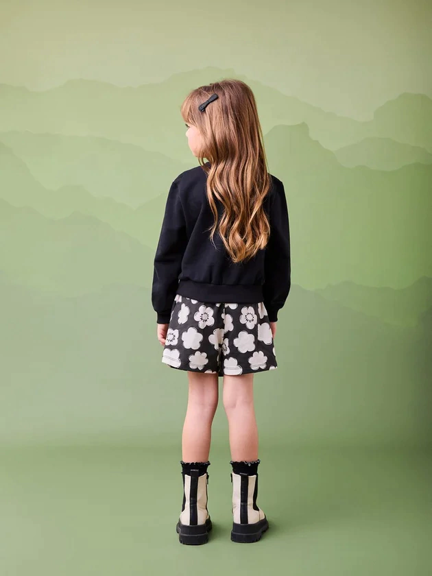Este mistura perfeita entre atitude e delicadeza! Esse conjunto une o charme do moletom preto com frase em destaque e laço aplicado ao mood divertido do short-saia florido. Ideal para as meninas que amam estar estilosas com conforto no dia a dia. Destaque para a estampa exclusiva "Momi Lovers" que dá um toque especial.