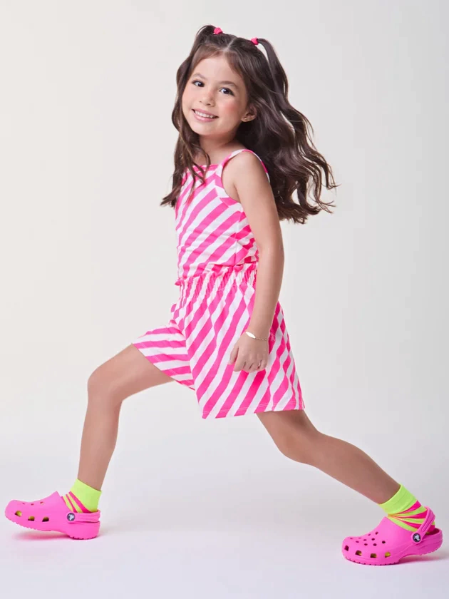 O conjunto infantil pink com listras é uma opção vibrante e cheia de estilo. A combinação do tom pink com as listras adiciona um toque de modernidade ao visual. Perfeito para os dias quentes, esse conjunto é confortável e ideal para looks descontraídos.